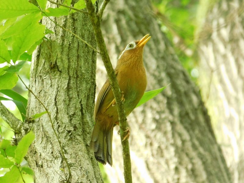 -- さえずるガビチョウ。
