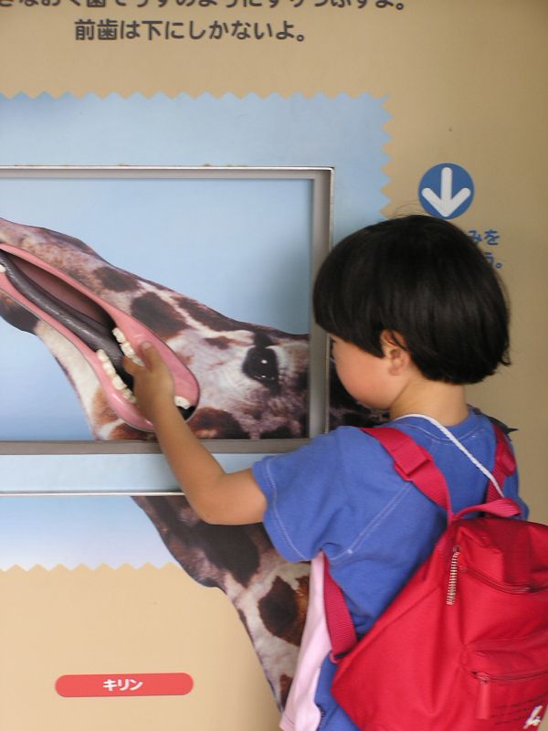 -- キリンの歯に触れる。