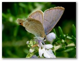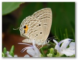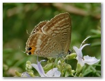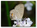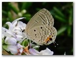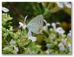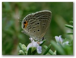 2020年10月12日(月) ◆今年は神奈川県南部で、クロマダラソテツシジミが大量発生したと伝えられている。横浜市内でも野毛山公園ほか、各所で成虫の姿が目撃されているというのだ。◆鈍足の台風14号がもたらした大雨・長雨がようやく明けたきょう、野毛山公園にクロマダラソテツシジミを見に行った。花に来る蝶を探すときは、まず花を探す。あっけなくも、ローズマリーの花壇で1頭のクロマダラソテツシジミが、すぐに見つかった。その後、野毛山動物園内の蝶を探索し、40分後に花壇に戻ると、クロマダラソテツシジミがおよそ10頭ほどに増えていた。◆同じ花壇に、ウラナミシジミやツバメシジミもいた。これらは一見クロマダラソテツシジミと似ている。尾状突起もある。しかしすぐに見慣れて、クロマダラソテツシジミを見分けられるようになった。クロマダラソテツシジミは、一旦花にとまると滞在時間が比較的に長く、撮影は容易だった。◆クロマダラソテツシジミは新しい外来種です。その幼虫は、ソテツの新芽を食い荒らします。クロマダラソテツシジミの卵・幼虫・さなぎ・成虫のいずれにしても、安易に持ち帰ったり、他の場所に放ったりして、図らずも分布域の拡大を手助けすることにならないよう、くれぐれもお願いします。