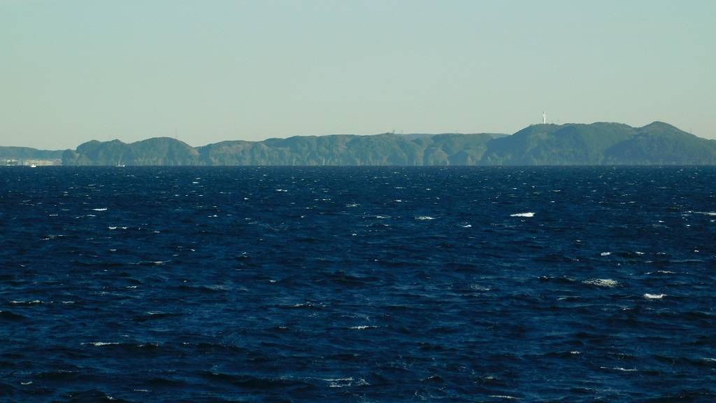 -- 東京湾より、富津方面を望む。右に東京湾観音。8:44
