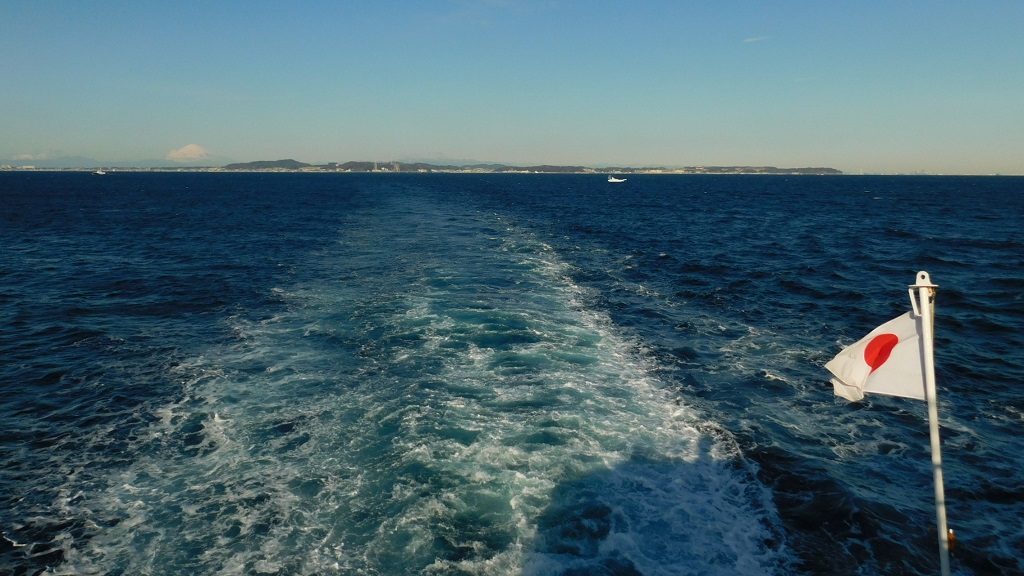 -- 三浦半島のかなたに、富士山と丹沢山塊。8:49