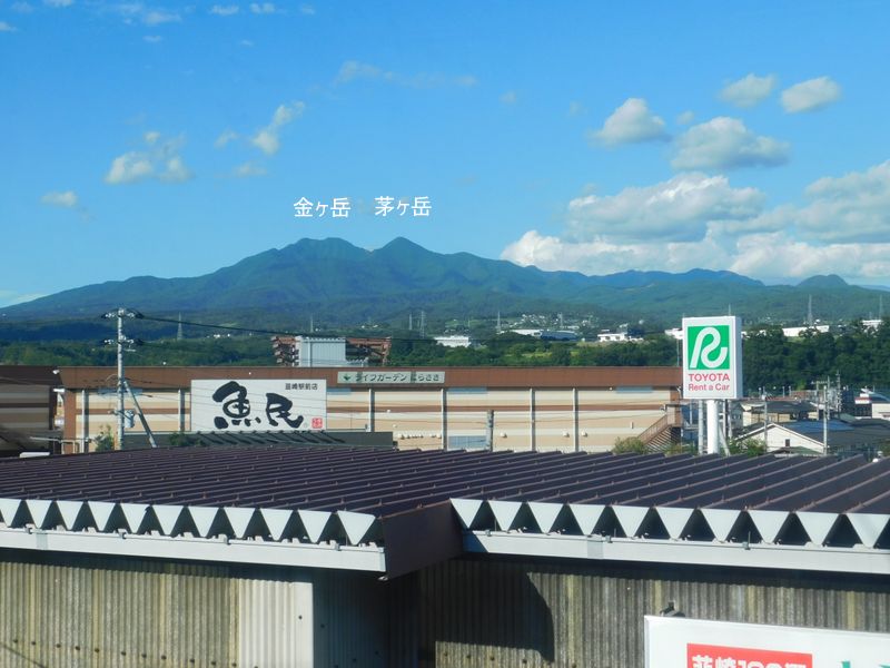 -- 韮崎駅にて、金ヶ岳・茅ヶ岳を望む。16:05