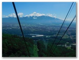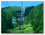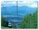 ゴンドラは8人乗りですが、まだ乗客がほとんどいなかったせいか、「お一人様」で乗せてくれました。何とも豪華!VIP待遇の気分です。ゴンドラはぐんぐん上昇。後の窓から八ヶ岳を一望できます。そのように設計したのでしょう。左右の小窓から、山の美味しい空気が流れ込んできました。山頂駅まで、750mの高低差を約15分で昇ります。たくさんのゴンドラが行き交うのを見ていたら、ピンクのゴンドラは、自分が乗っている1台しかないことに気づきました。