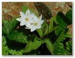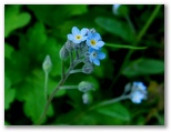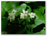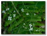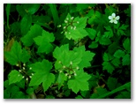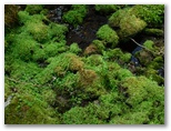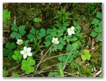 入笠湿原は、山の中に隠された秘密の花園。大阿原湿原は、のどかな桃源郷の趣。入笠山の二つの宝物を知りました。さて、展望台の先には木道が続きます。鮮やかな花こそありませんが、草や苔に湿原ならではの味わいがあり、蝶もたくさんいます。ここのクリンソウは、まだつぼみ。ズミは満開を少し過ぎたでしょうか。でも僅かながら、桜色のつぼみもありました。テイ沢は静かなせせらぎ。青草や苔の生した大小の岩。その合間に咲く白い花は、サンリンソウです。