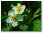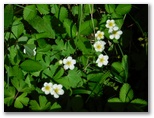たちまち心を躍らせてくれたのは、朱色のレンゲツツジ。ここかしこで、きれいに咲いています。まだつぼみばかりの株もあり、来月初めまでは楽しめそう。目線を下ろすと、逞しそうなシロバナノヘビイチゴ。一つ一つの花が大きく、しかもたくさんあります。ウマノアシガタの群落は、緑の湿原に金粉を撒き散らしたよう。湿原中央部で輝いています。北側の木陰に行くと、クリンソウが群生していました。この車輪咲きの赤い素朴な花は、昔から好きな野花の一つです。