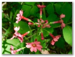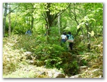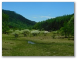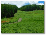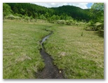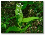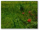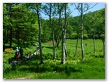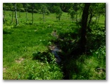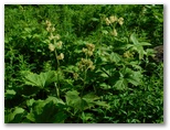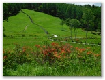 小さなせせらぎの傍らに、数株のクリンソウが見られました。大菩薩連嶺でもよく見られる風景です。ところが、その少し先に、クリンソウの著しく密集した群落がありました。花も朱色と赤紫の2色。真っ直ぐに立つ細い茎の頂点にパっと広がる花は、さながら花火のようです。どうして、ここに、このような高密度で群生するのか、その訳を知りたいと思いました。すぐ上方に林道を挟んで、元はスキーのゲレンデだった、緑の鮮やかな草原、「花畑」があります。