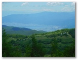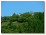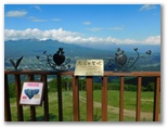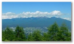 大阿原湿原を一巡りし、入口に戻りました。時刻は13時11分、シャトルバスに乗るまでの時間を見計らうと、そろそろゴンドラ山頂駅へ戻らねばなりません。再びカラマツの林道をテクテク、山野草の花を探しながら歩きました。中間地点に「八ヶ岳ビューポイント」があります。うれしいことに、編笠山から蓼科山までの稜線を、雲に邪魔されることなく、きょう初めてくっきりと望めました。ここはベンチもあって、時間があれば、ゆっくりして行きたいところです。