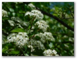 「花畑」の道では、レンゲツツジと袖を触れ合うほど接近します。花の色も、黄橙から朱色まで個体差があるのは、実生の野生ツツジだからでしょう。小さなすずらんの花は、湿原よりも「花畑」での方が見やすく、撮影向きだと思います。最上部のジグザグを折り返すと、蓼科山がよく見えました。そして「花畑」の道が登山路と合流。アズキナシとズミとが競うように咲いていますが、ここのズミは既に終盤。美しいズミは、後ほど大阿原湿原で見ることになります。