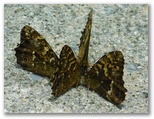 私は周回コースを反時計回りに歩いています。テイ沢分岐がその中間点で、沢の小橋を渡ると、遊歩道の様相が一変しました。前半は明るい湿原を貫く木道でしたが、後半は湿原と交わる森の中の桟道です。老年期の湿原に樹木が侵入して行く前線と言えるかも知れません。草原は見えにくくなりましたが、湿地の自然林を間近に観察できます。日光が差し込むので決して暗くはなく、桟道には蝶の集団が各所に見られました。人が通ると一斉に舞い上がり、乱舞します。