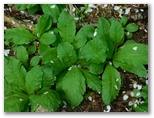 道草を食いました。入笠山頂に向かいます。カラマツ林の道を行くと、サルオガセがありました。一見とろろ昆布のように見える地衣類ですが、見ようによって、寂寥、幽玄、平安などを感じることがあります。今回ズームインして見たら、意外ときれいな植物かもしれないと思いました。小さな沢沿いの道を進むと、初めて見るズダヤクシュ、久々に見るサンリンソウの花。時間は気になりますが、素通りはできません。後悔のない時間を生きるための葛藤。大げさかな?