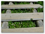 「花畑」入口から入笠湿原までは、往路と同じ道です。お花畑のレンゲツツジ、群生するクリンソウ、100万本のすずらんなどを、もう一度見られるのが嬉しいところ。入笠湿原の中央の十字路から、すずらんの自生地を貫く木段を登ります。美しい湿原を振り返り、振り返り、左右のすずらんを愛でながら登りました。ここを歩かずには帰れません。登りきるとカラマツ林を抜け、電波塔の横を通って、朝の出発地に戻りました。このとき14時25分、計画通りです。