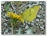 クマガイソウは終わり、花ガラになっていました。この花は、高尾山の秘密の自生地と、家の近くの公園でも見られるので、まあ大丈夫です。ニッコウキスゲは咲き始めで初々しい。ああ、早くも稼いだ時間の半分を使ってしまいました。入笠湿原に向かいます。エゾハルゼミの婚活の歌が賑やかな、カラマツ林の道を急ぎます。何度も出遭う色鮮やかな蝶は、ヤマキマダラヒカゲ。翅を閉じると保護色になります。林道を横断し、鹿止めのゲートを通過し、湿原に入りました。