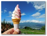 以後の話は端折ります。1時間余りの延長路程で、多くの花を撮影し、ルバーブソフトクリームを食べ、「恋人の聖地」を訪れました。15時59分、再びゴンドラに「お一人様」で搭乗し、「動く展望台」から八ヶ岳の眺望を満喫。おしぼりのサービスもあります。山麓に着くと、売店で山野草の苗をもらいました。選んだのはアサギリソウ。バス乗り場で、富士見駅への道順を教わりました。ていねいに教えてくれましたが、難しくはありません。しかも下り基調で楽な道です。