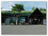 素晴らしい晴天ですが、南アルプスは雲がかかり、どこがどこなのか分かりません。地蔵岳や甲斐駒など、特徴のある峰が見えないのです。やはり梅雨時、いくら晴れても、湿度は高いのでしょう。9時10分、時刻表通りに富士見駅に到着しました。昭和の味わいが残るプラットフォームと駅舎。駅正面のバス乗り場に行きます。二人のご婦人に誘われて、10時発のシャトルバスを待たず、タクシーに相乗りしました。片道1500円÷3です。これで40分の時間を稼げました。
