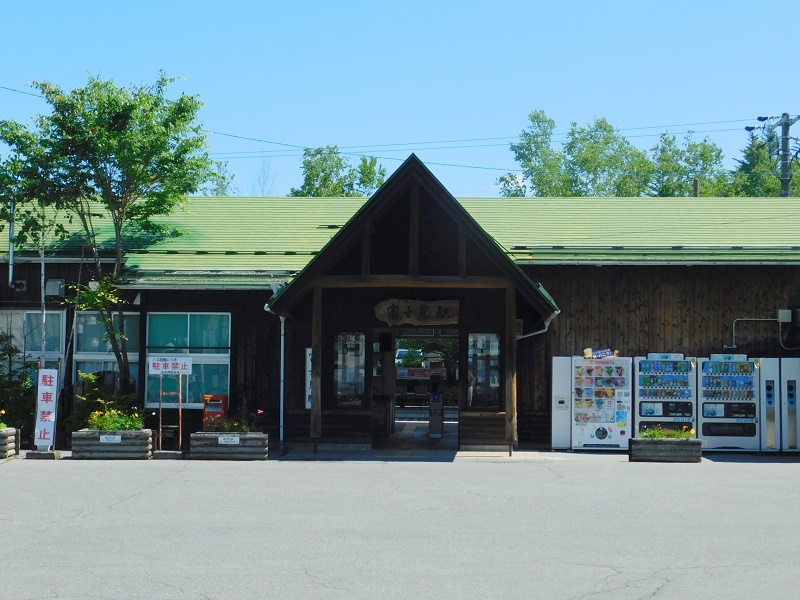 -- バス乗り場から見る、富士見駅正面。9:14