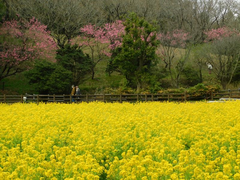 -- 桜の園にハナモモ。