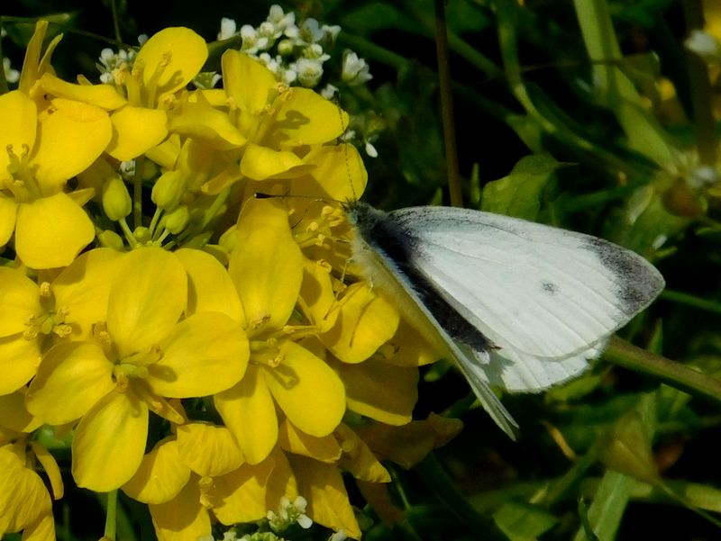 -- ♪ 菜の花にとまれ、モンシロチョウ。