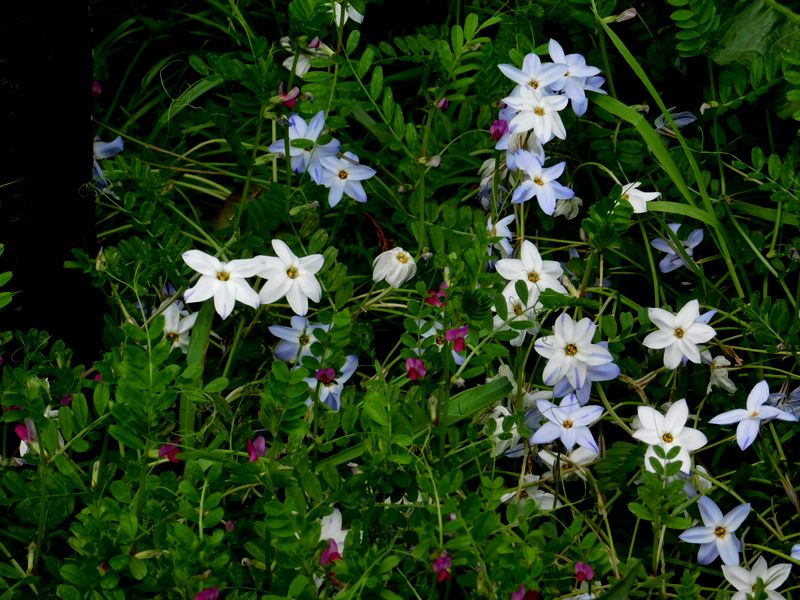 -- 青・白のハナニラと、カラスノエンドウ。