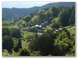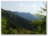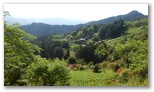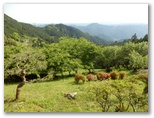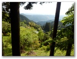 以後は話を端折りますが、相変らず山道と林道の出入りを何度も繰り返しながら、傘杉峠へ、そして顔振峠へと至りました。いずれも現役の十字路です。顔振峠は展望に優れていますが、私が楽しみにして来たのは、風影(ふかげ)の山上集落を望むこと。好い展望地を探して行ったら、摩利支天の横の小さな緑地に格好の場所ありました。風影は、昨年の秋に歩いて記憶に焼き付き、今眺めても、懐かしさを憶える風景です。できれば八徳にも行きたかったと思いました。