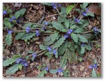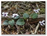 山道には、点々とフモトスミレが咲いていました。この先もずっと見ることになるとは知らず、何度もカメラを向けてしまいます。虚空蔵峠から刈場坂峠へは、近道である林道を歩きました。ロードバイク(自転車)が空気を鳴らし、一列縦隊で下って来ます。皆さん、路面の状態が良いことを調べてあるのか、爽快なスピードです。この道の制限速度は20km/hだということが、後で分りました。先頭の人が私を見ると、後方に合図を送り、私を避けるように走って行きます。