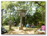 刈場坂峠のトイレを使い、横見山に向かいました。林道から右手の山道に入り、神素盞鳴大神(かむすさなるのおおかみ)の祀られた祠をちょっと覗きます。傷んだ階段道を少し登ると、「ツツジ山」という山頂標の立つ三角点峰でした。この峰の名称は、横見山ほか、諸説あるようです。山頂のツツジ群を保護しているので、いずれ美しいツツジの山になるに違いありません。何株かのヤマツツジが美しく咲き、ウスバシロチョウが舞っています。ここで昼食にしました。