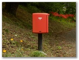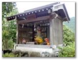 広い道路に下りて、顔振峠へと登ります。車道ですが、コスモス、萩、紅白のミズヒキなど、季節の花や虫が見られて、飽きることがありません。小さな郵便ポストがあったので、はがきを1枚持って来ればよかったと思いました。近くに郵便局や商店はありません。消印に「風影」の文字が入るとうれしいのですが、ちょっと無理でしょうか。やがて車道が「関東ふれあいの道」と交差し、この山道を少し登ると、摩利支天に至りました。ここでもう一度、風影を望めます。