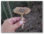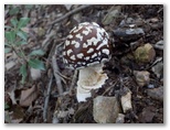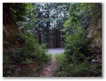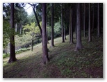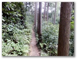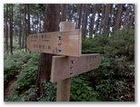 ユガテから東飯能駅への道は、二通りあります。山道を歩くか、林道を下るか、十字路でちょっと考えましたが、「飛脚道」の案内図を見て、山道に決めました。山道はアップダウンがあり、所要時間も少し長くなります。まず炭焼き窯ときのこ園の前を過ぎて、1人が通れるだけの狭い山道に入りました。地図に名前のない「橋本山」と言う小峰があるので、寄って行きましょう。「男坂」をわずかに登ると、難なく登頂できました。晴天の日には、眺望が好さそうです。