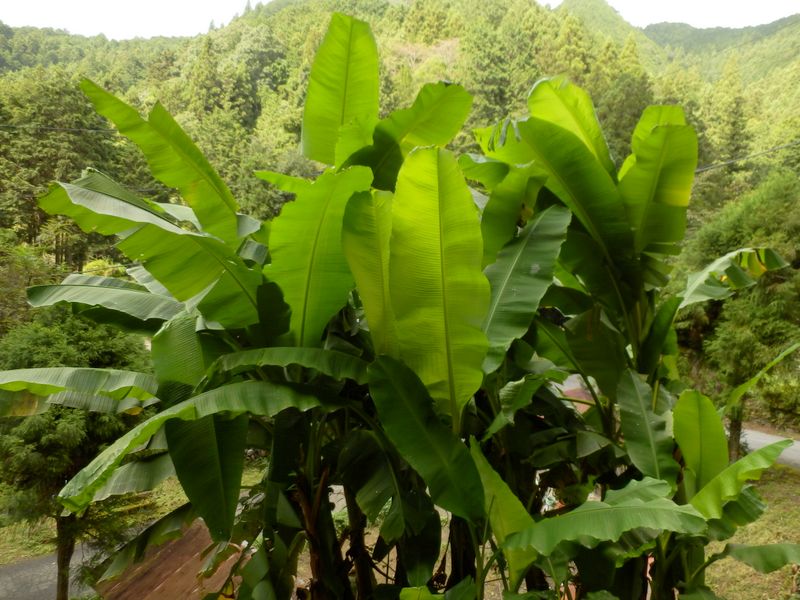 -- バショウの葉がワサワサ。9:44