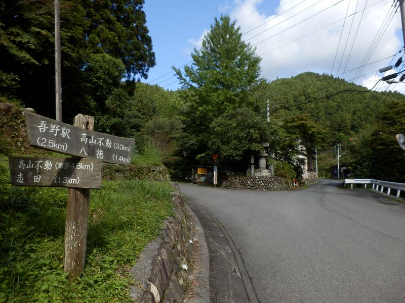 -- あそこの石地蔵の三叉路を右に進む。9:06
