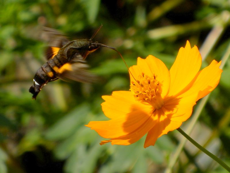 -- ホシホウジャクとキバナコスモス。9:09