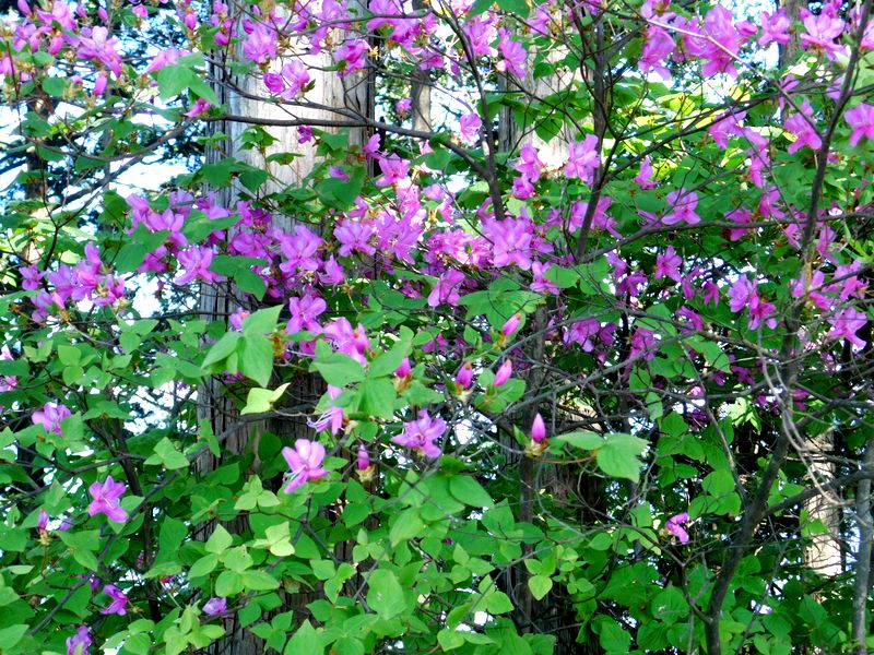 -- 山頂のミツバツツジ。