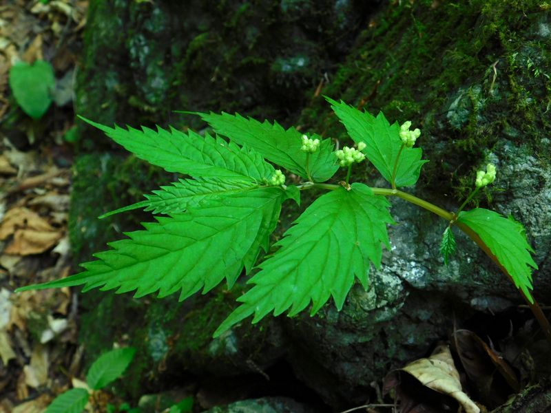 -- ウワバミソウの葉は非対称。