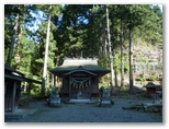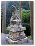 養沢川沿いを走るバスの車窓から、美しい清流と、いくつかの釣り場が見えました。大岳鍾乳洞入口バス停で、残っていた乗客全員が下車。カラになったバスを見送り、目の前の養沢神社で簡単に身支度をします。鳥居をくぐると、1対の竜の石像が天を見上げていました。拝殿の前には普通の狛犬もいます。神社の裏手に、さっそくサルギ尾根を目指す人が見えました。
