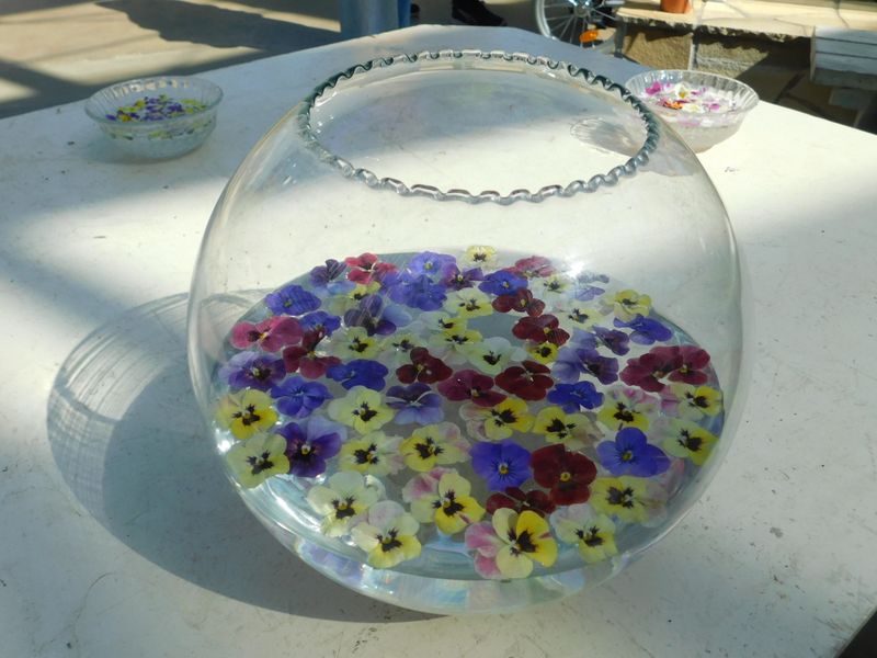 -- 水に浮かべたビオラの花。