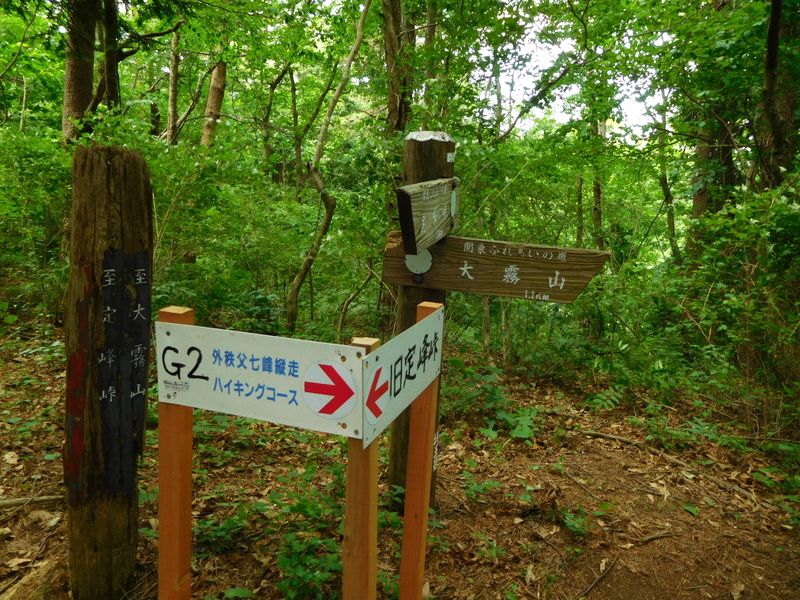 -- 桧平の屈曲点。左に風雪を経た道標も。11:54