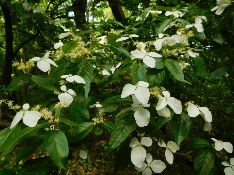 -- ガクウツギ。3片が不揃いな装飾花。12:55
