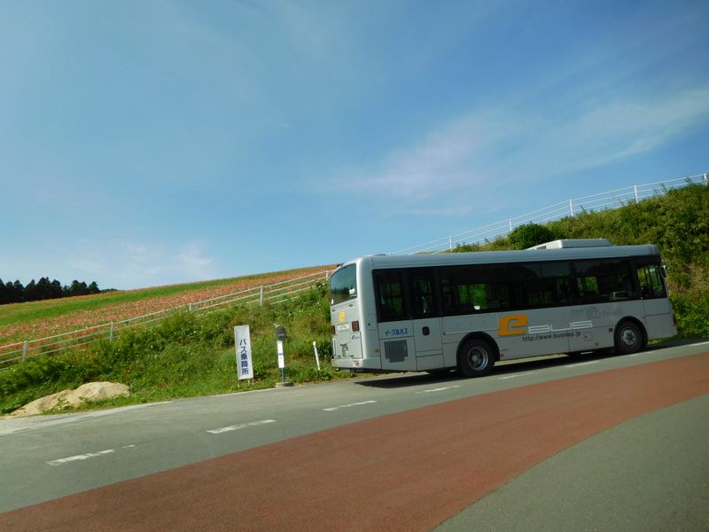 -- 「天空のポピー」バス乗り場。16:00発が本日の最終便。15:41