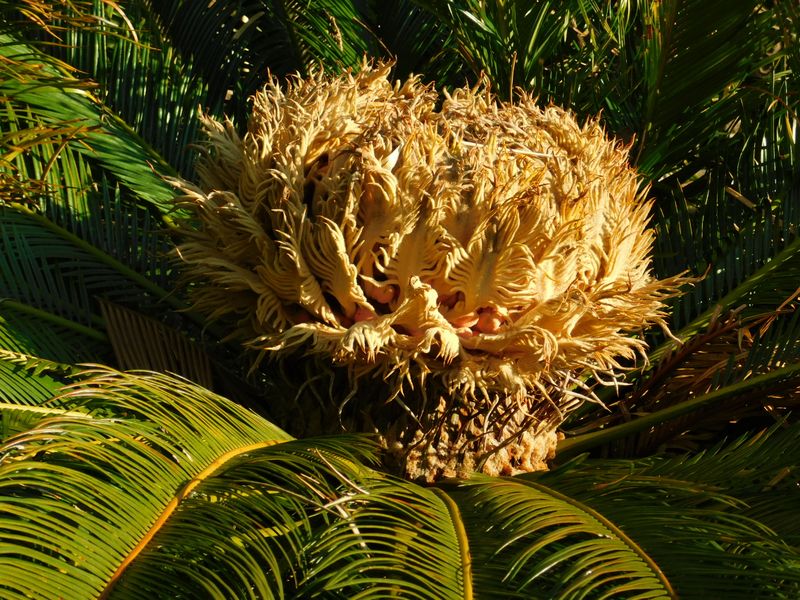 -- 蘇鉄の実がピンク色。15:00
