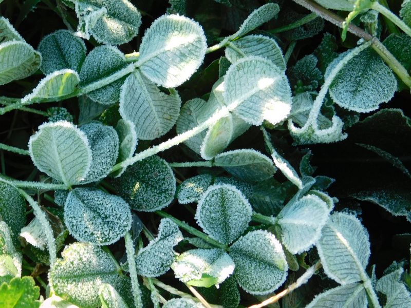 -- シロツメクサに白い霜。8:07