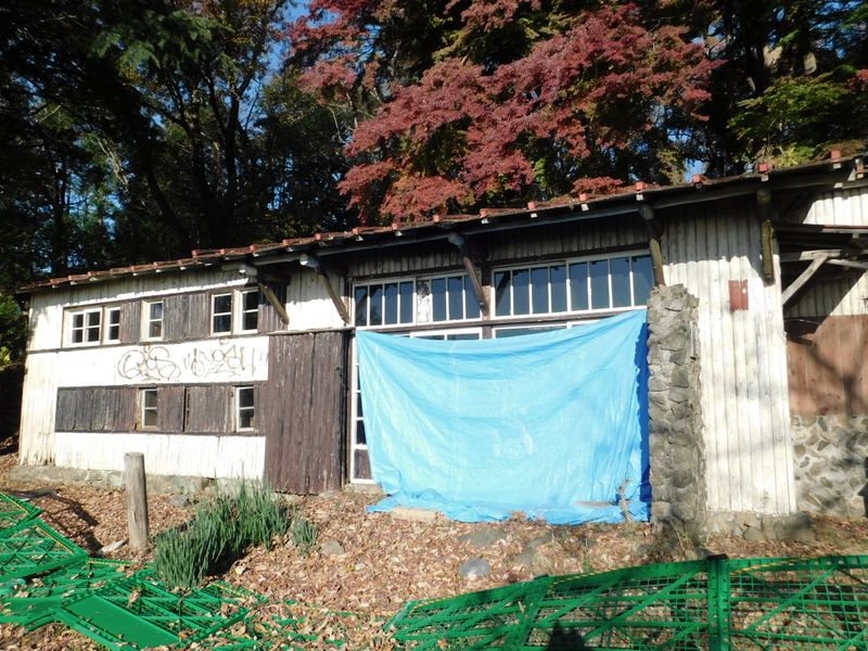 -- 旧大倉高原山の家。ペンキで落書きが。8:23