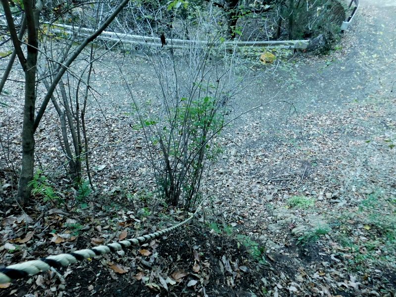 -- 10分弱で林道に下り立つ。8:49