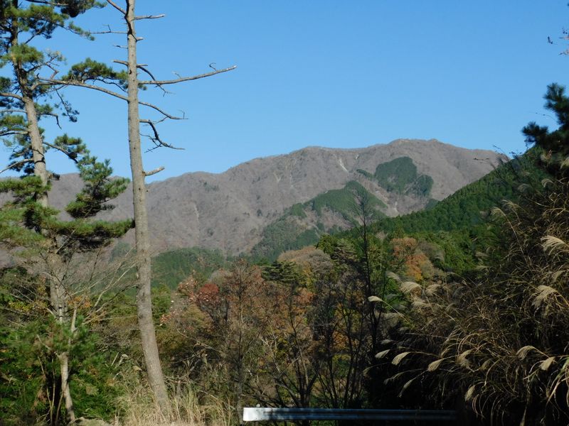 -- 林道をテクテク。鍋割山を望む。8:53