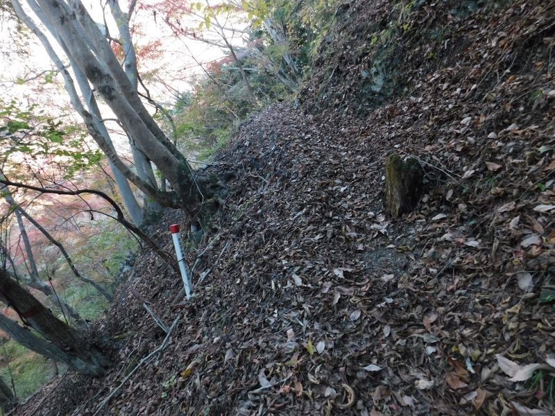 -- 落ち葉の堆積に足を取られないように。