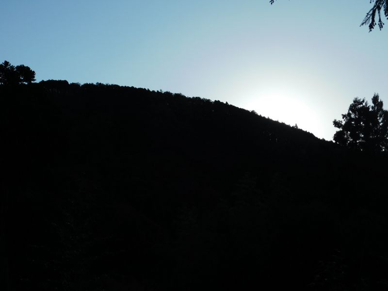 -- 山の稜線から日が昇ろうとしている。7:33