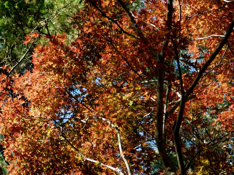 -- 背景に緑の松と青い空。