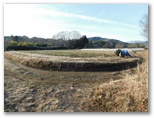 志田峠を越すと、道が狭くなりました。いつしかアスファルト舗装もなくなっています。荷車がぎりぎりすれ違える道幅でしょうか。もしかしたら、この辺りに昔日の面影が残っているのかもしれません。そんな区間が10分か20分ほどあったと思います。やがて自販機が現れると、愛川町の配水場、カントリークラブ、老人ホームなど、次々と現代を象徴するような施設を目にしました。そして再び開放感のある農地が開けます。ここが古戦場に違いありません。