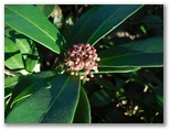 少しペースを下げ、省エネモードに切り替えました。まだ先が長いのです。ゆっくり、ゆっくり登り、ミヤマシキミの花を撮影しながら筋肉を休ませたりして、8時45分、雨乞山頂に到着しました。きょう最初の目的地です。三等三角点があるので、かつてはそれなりの展望が利いた山なのでしょう。でも今は冬枯れの季節でも、展望が全くありません。ベンチもないので立ったまま、熱いココアを飲みました。ここは今、静寂そのものです。