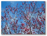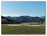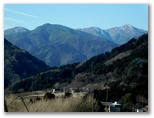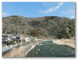 下山中の事故は、危険な場所よりも、むしろ何でもないような場所で起こりがちです。油断するからでしょう。急ぐ必要もないので、ゆっくりと下り、最後に鉄板の橋を渡って、真名倉の里に着きました。日向ぼっこのおじいさんと、きょう初めてのあいさつを交わします。里では紅梅が花盛りでした。石垣と生垣の緩やかな坂道がのどかです。中津川に架かる日向橋から大峰を見上げ、宿題が一つ片付いたな、と思いました。日向橋を渡りきると、ゴールの半原バス停です。