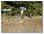 久保田酒造の前で左折し、少し進むと、雨乞山を指す道標がありました。「よし、いいぞ!」と道標に従って右折すると、すぐに道標のないT字路に突き当たります。ここで右か左か、立ち止まってしばし思案したのですが、間違えて右を選びました。雨乞山の位置から判断したためです。でもわずか3分ほど行くと、突然道が無くなりました。引き返します。正しい道はT字路で左折し、その少し先で右手に墓地を見る道でした。