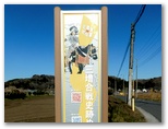 古戦場の真っただ中に、騎馬武者を描いた案内板が立っていました。英語で“Hojo vs Takeda Tour of Mimase Battle”と書いてあります。同じ看板の反対側は、「北条軍対武田軍 三増合戦史跡めぐり」と、日本語でした。観光案内によくある「三増合戦場」の大きな石碑もすぐ近くです。「三増合戦のあらまし」の説明板、「三増合戦陣立図」、「鎮魂碑」なども並んでいます。この辺が合戦の中心部だったのでしょうか、遺骨の出土もあるそうです。